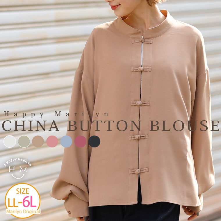 【全品10%オフクーポン5/6 9:59まで】 大きいサイズ レディース ブラウス | Eポプリン ボリュームスリーブ チャイナ シャツ ブラウス OHS _ オリジナル トップス 袖コンシャス LL 3L 4L 5L 6L 春 春物 春服 ぽっちゃり ゆったり お腹 胸周り 腰周り 長袖 [TG35113LL]