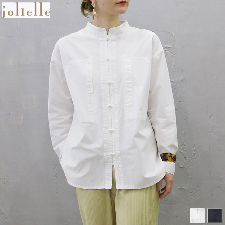 スタンドカラーチャイナシャツ 綿 ブラウス シャツ スタンドカラー カンフーシャツ 中国 デザイン トップス 羽織り jolielle 新作